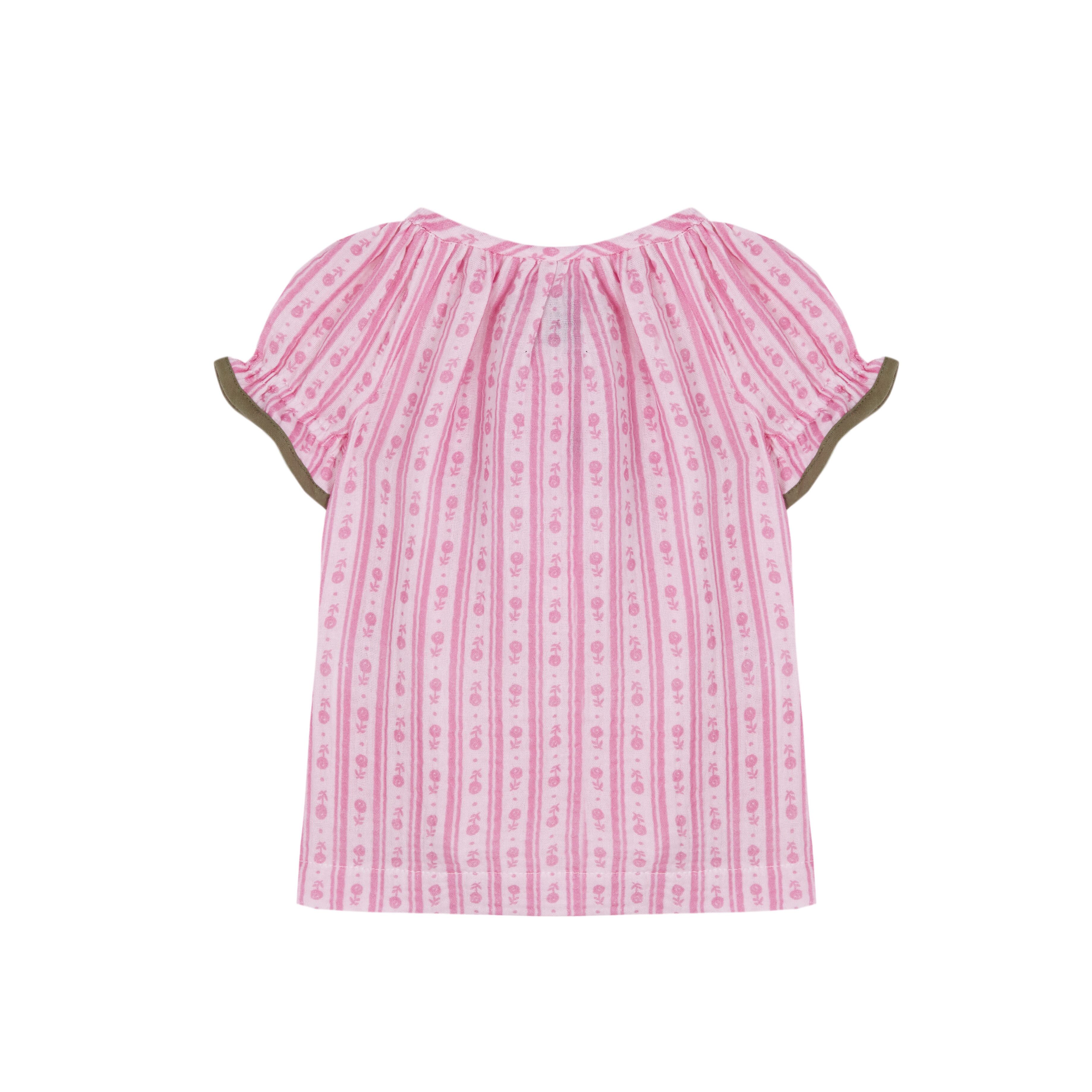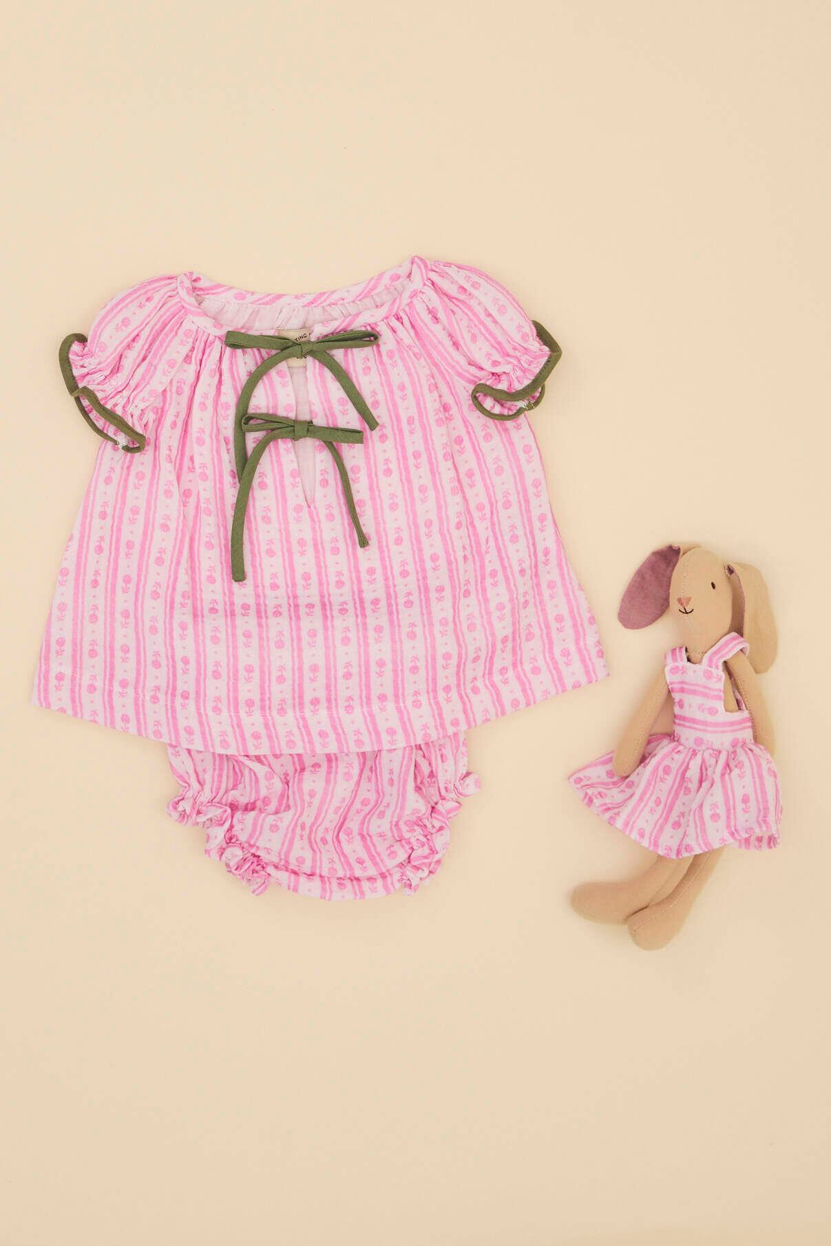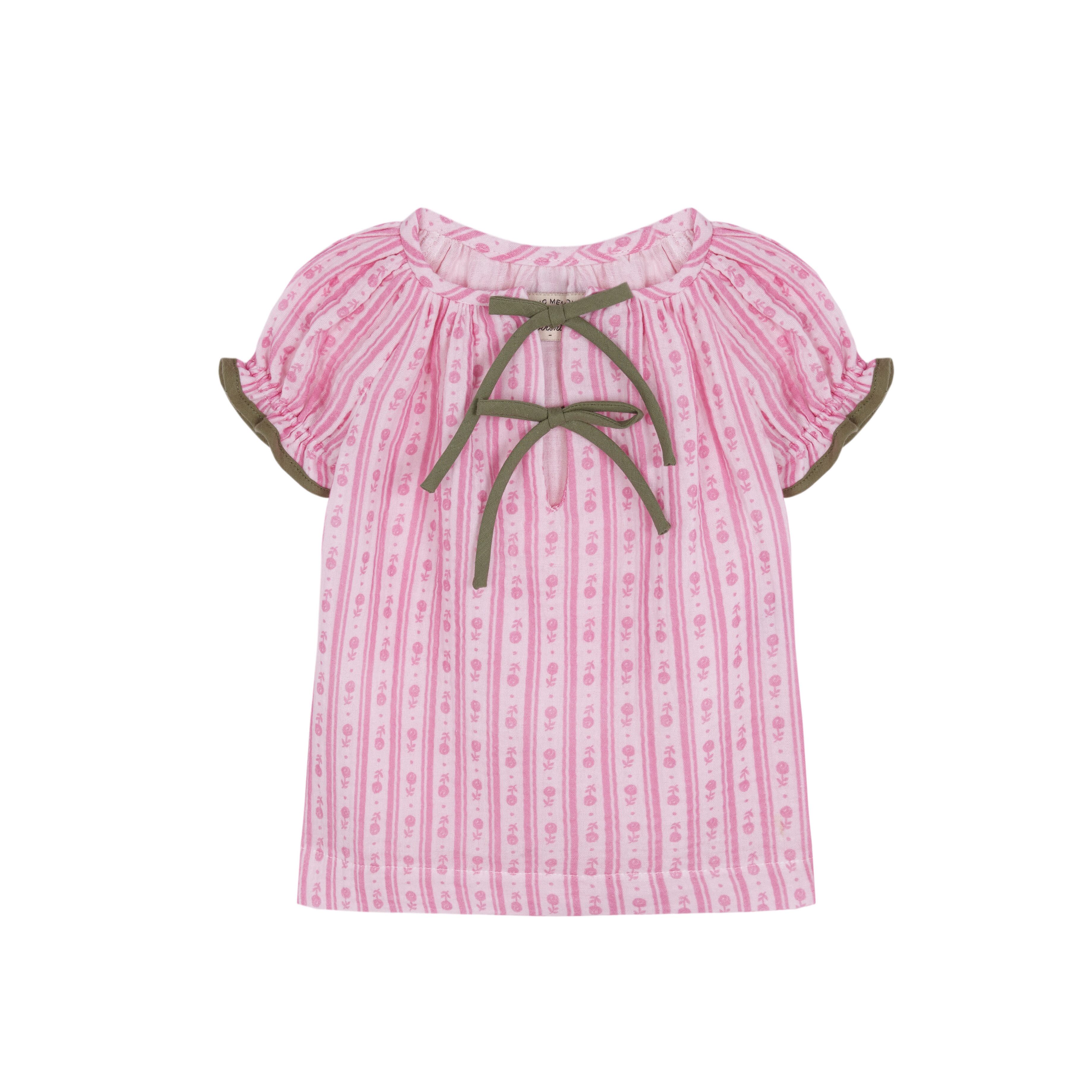 ピンク×グリーンの組み合わせが可愛いブラウスとブルマのセットアップです♡
