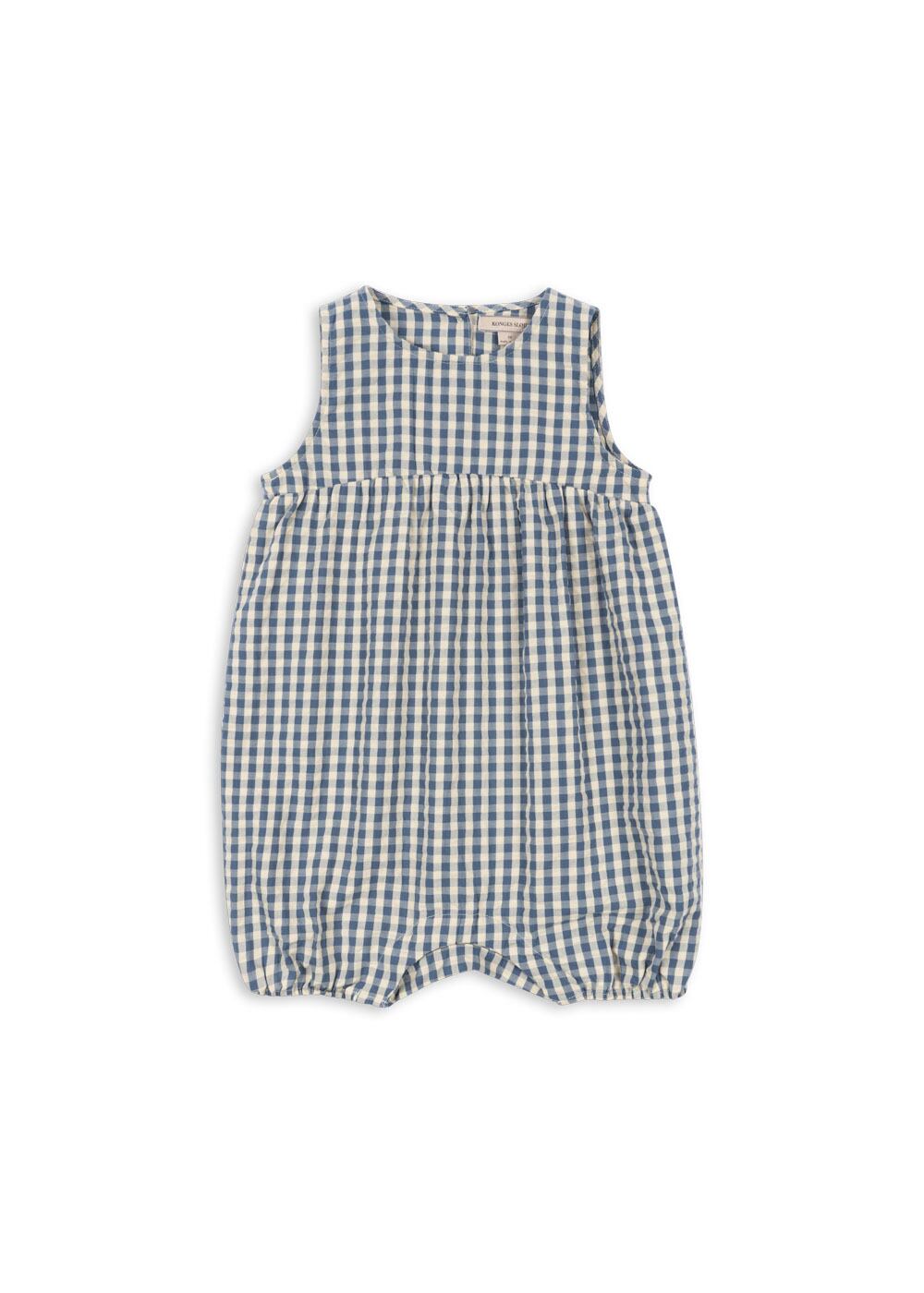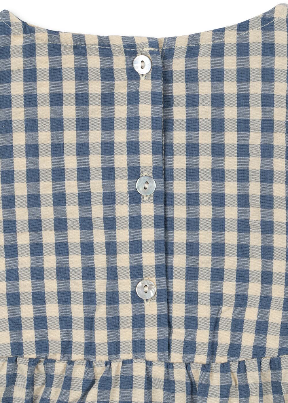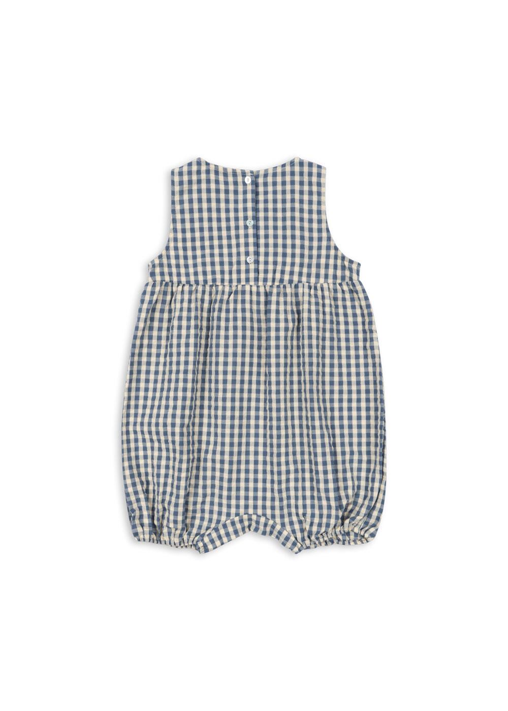 去年とカラーが少しだけ変わって戻ってきたこちらのロンパース、ギンガムチェックがよーく見るとブルーとクリーム色の組み合わせなんです♡