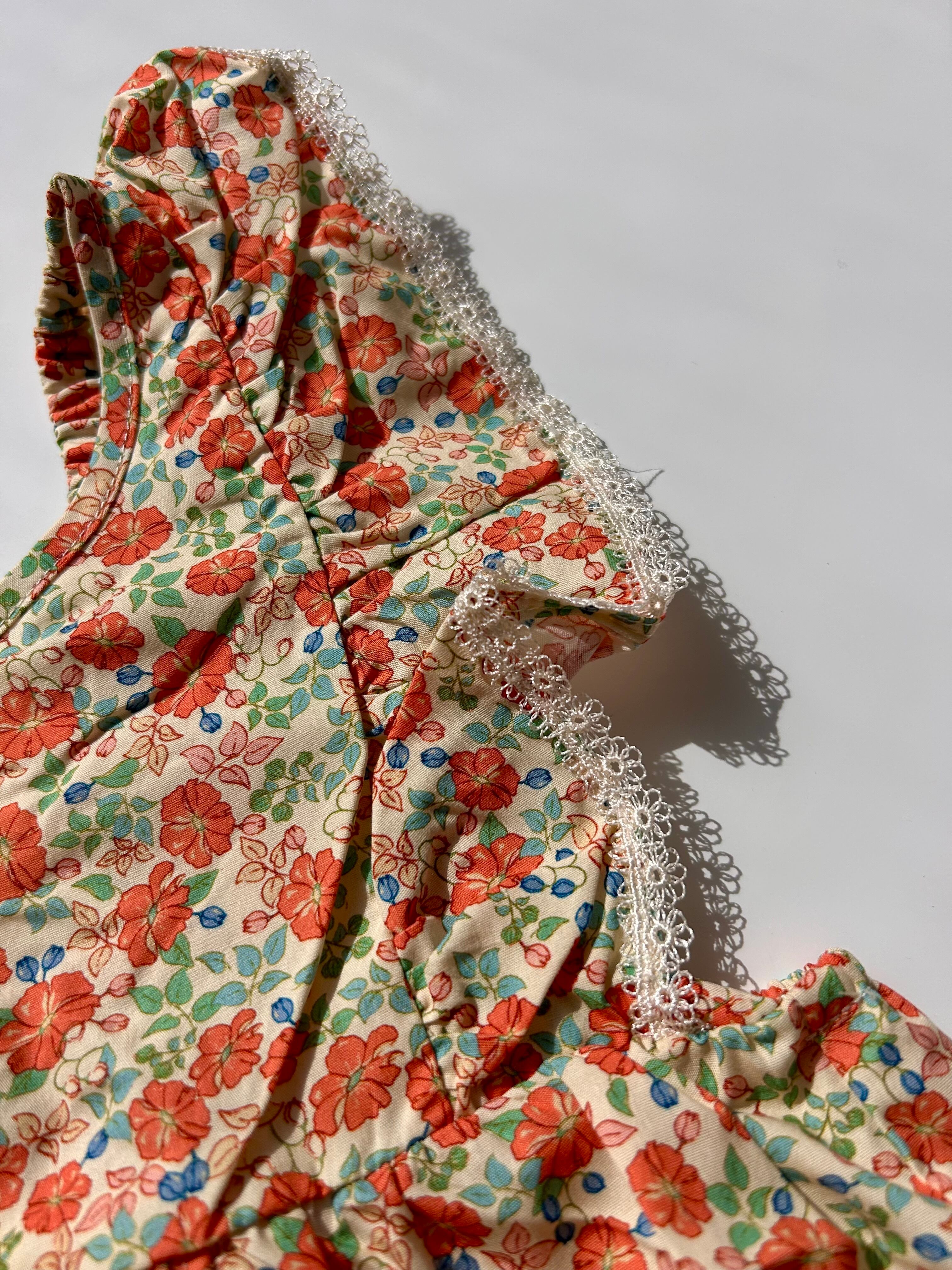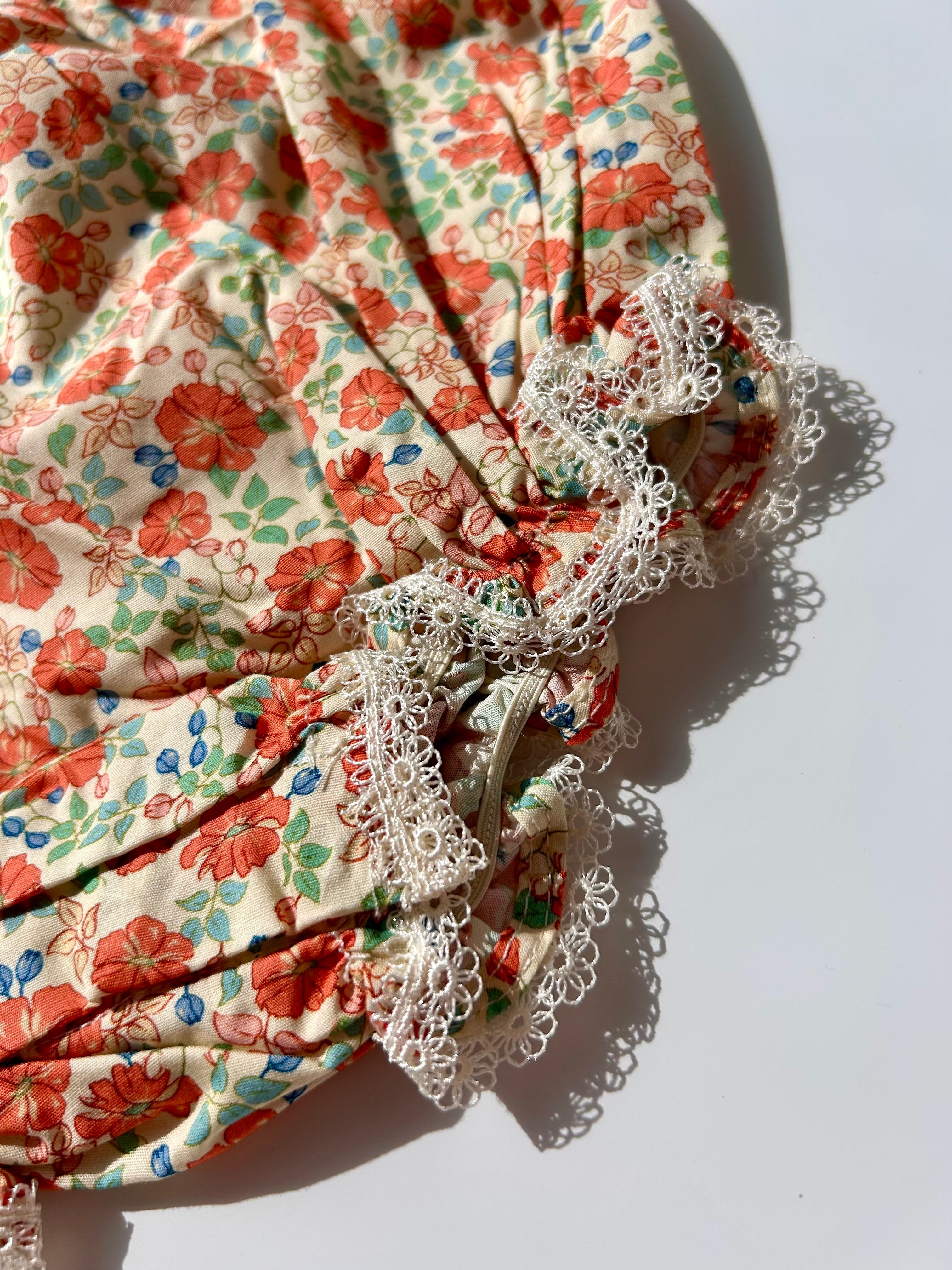 さりげなく肩フリル部分と足の付け根部分にお花のレースが付いていてとっても可愛いロンパースです♡