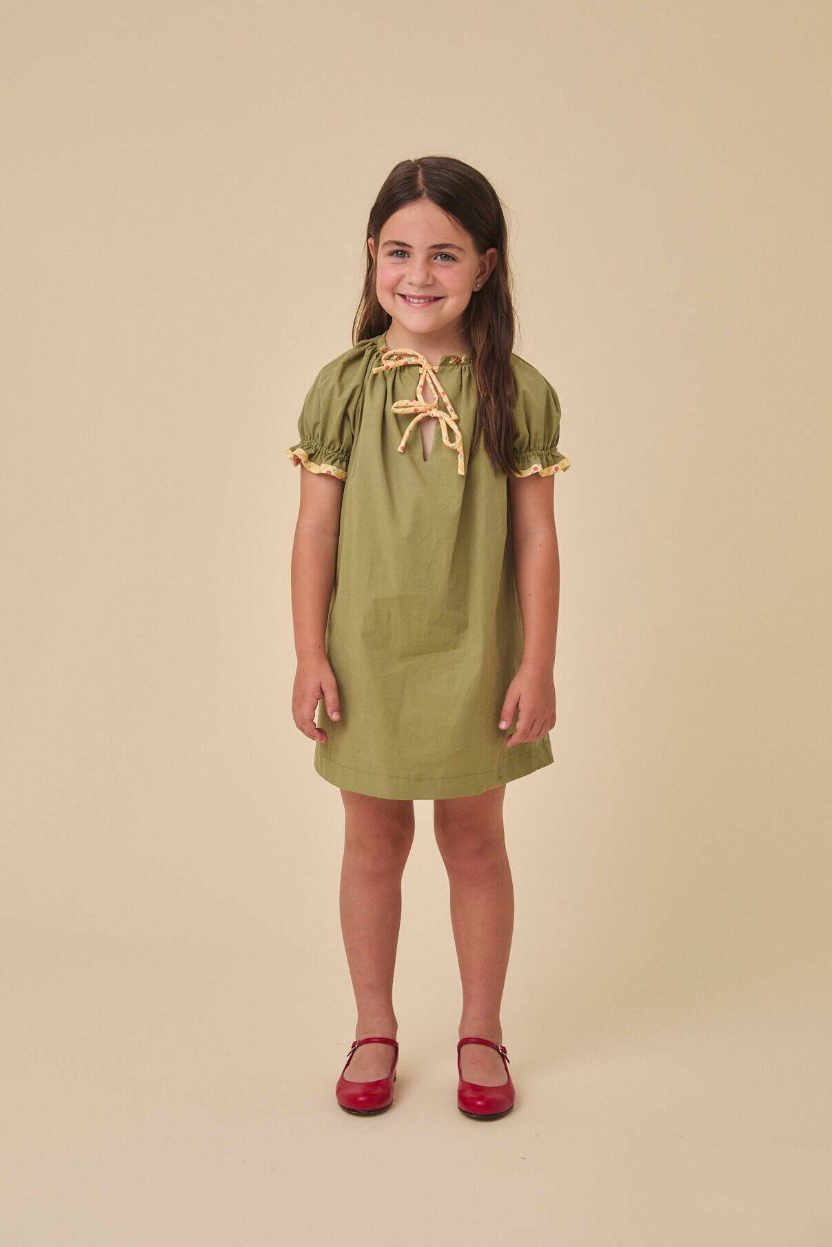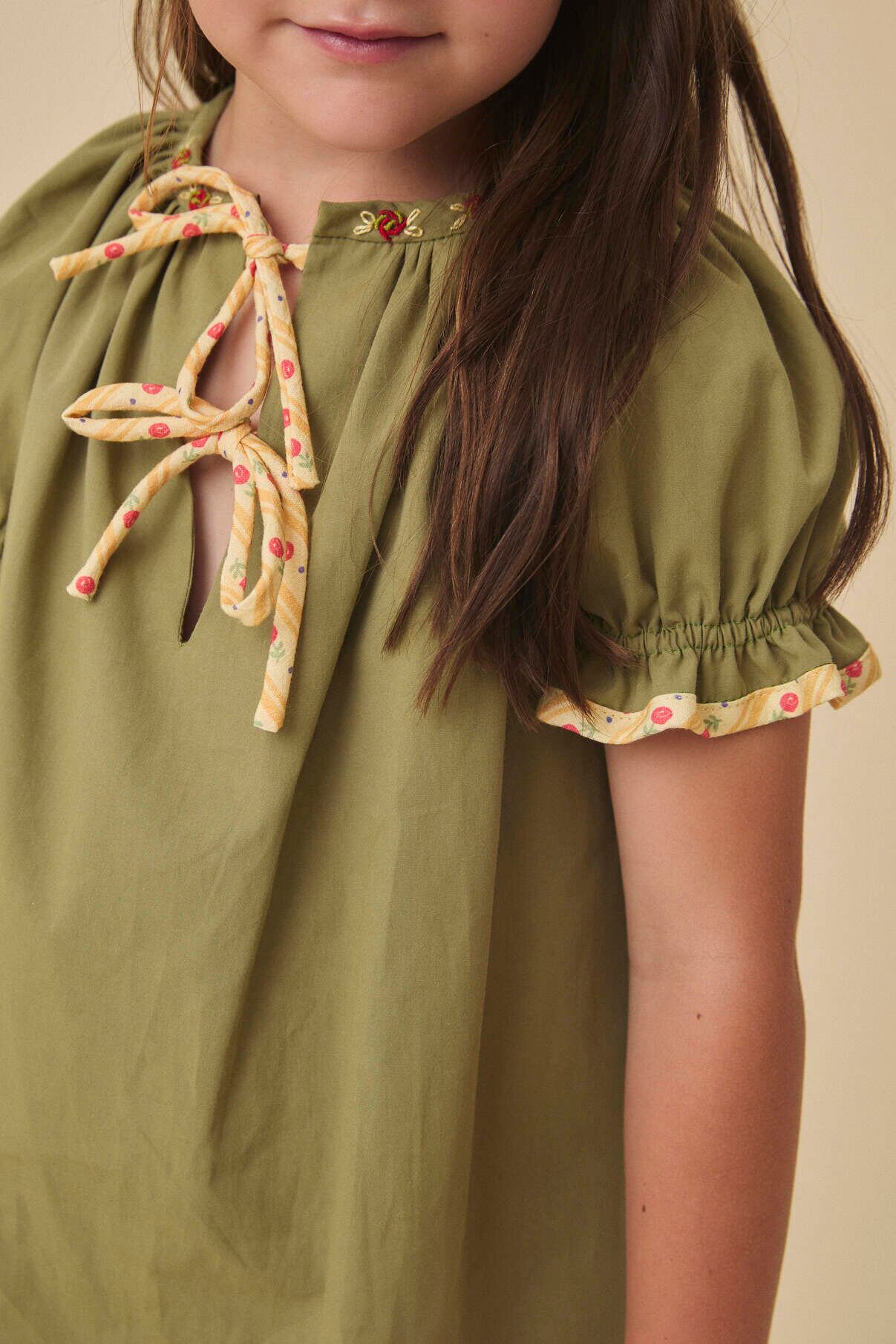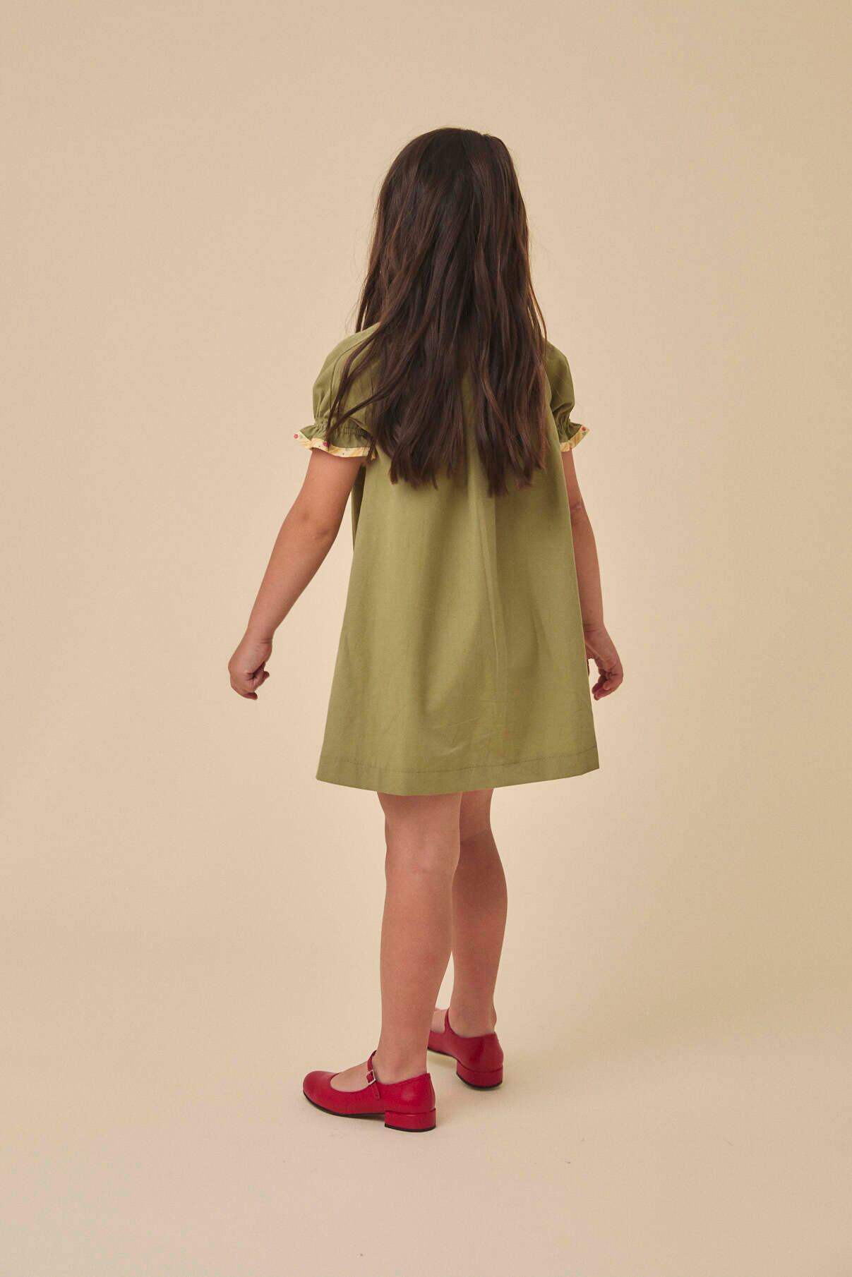【1点のみ】【Birinit petit】Vilela embroidered Kaki dress /-Vestido Kaki bordado Vilela | Mon petit minet select(モンプチ) 子ども服・海外子ども服・ヴィンテージ