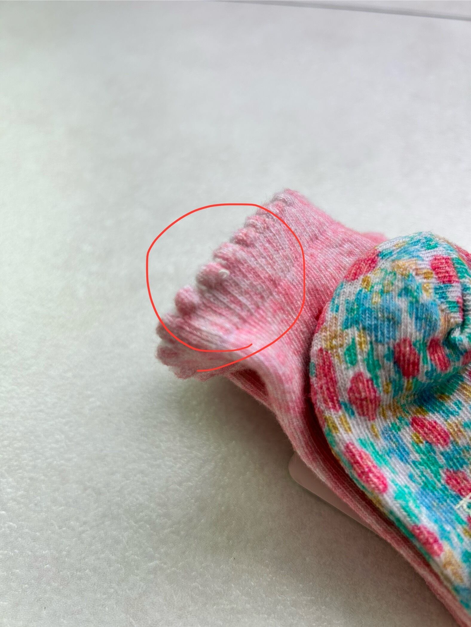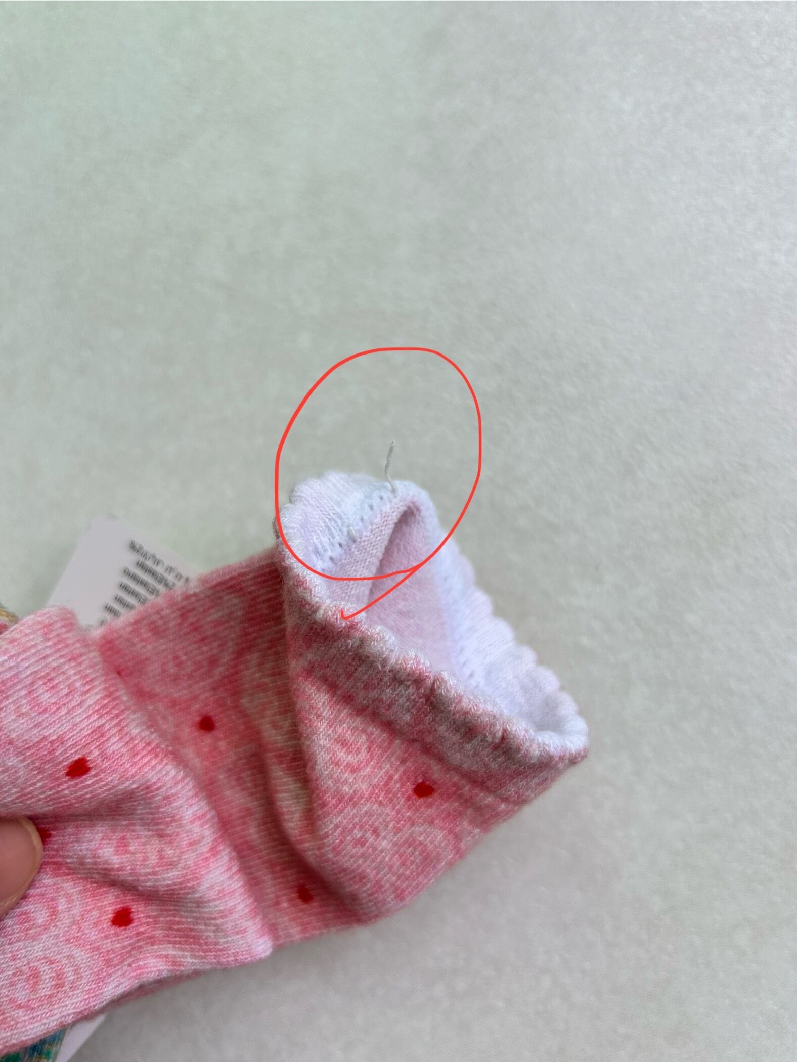 内側:ゴムが出ています。