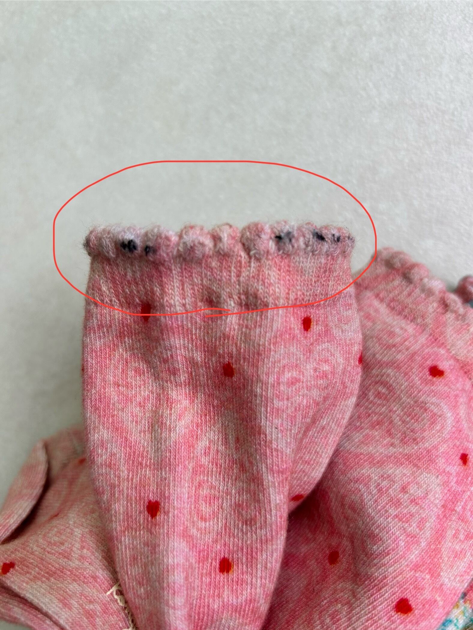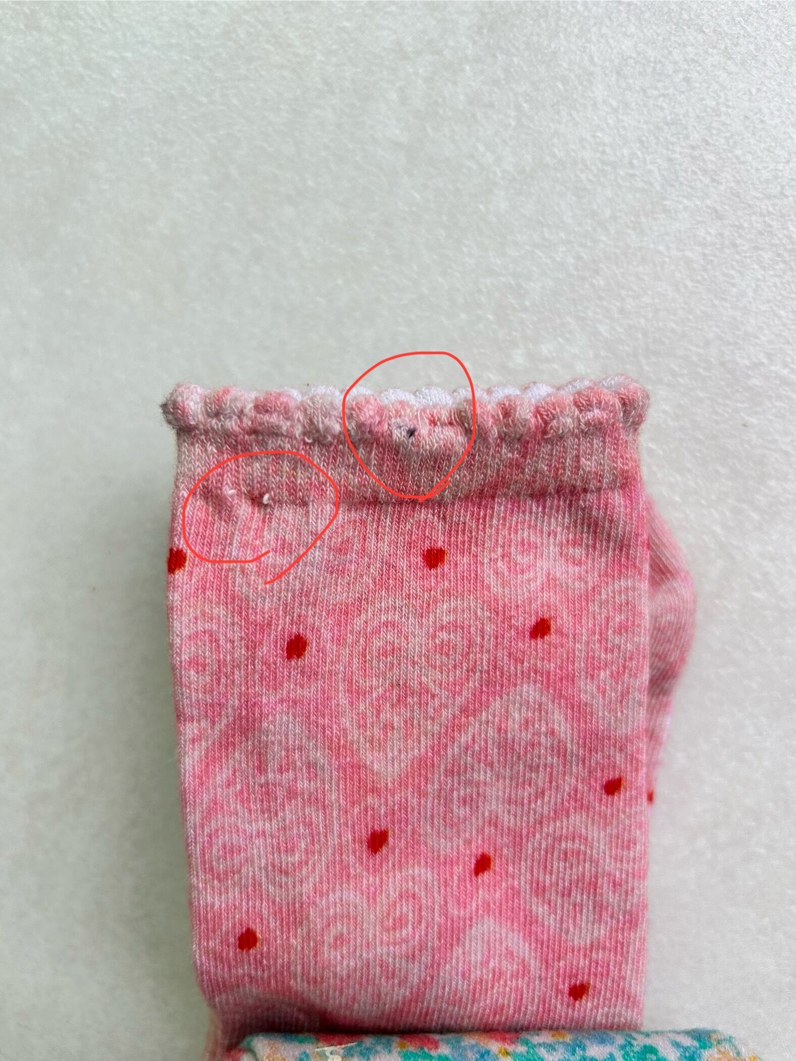 若干布の隙間からゴムが出ています。
