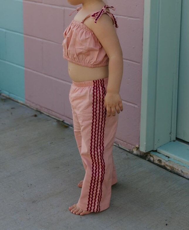 両サイドに5本の赤いリックラックトリミングを施したスタイルがお洒落な1着です♡