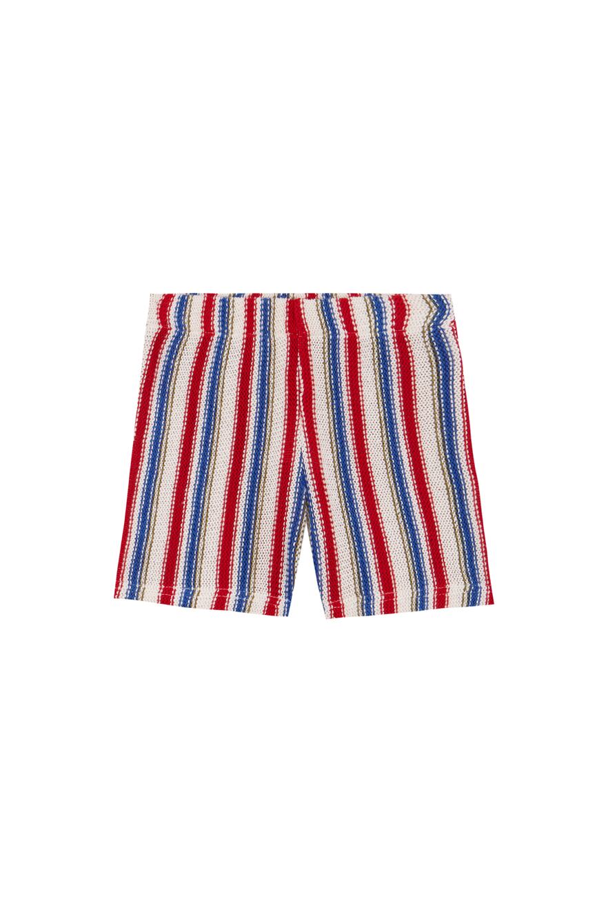 爽やかなストライプが印象的なショートパンツ。こちらはニット素材となっております。